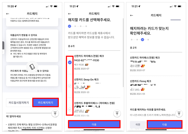 모바일 앱을 이용하는 방법도 거의 비슷합니다. 스마트폰만 있다면 언제든지 신한카드 해지를 할 수 있으니 정말 편리합니다.