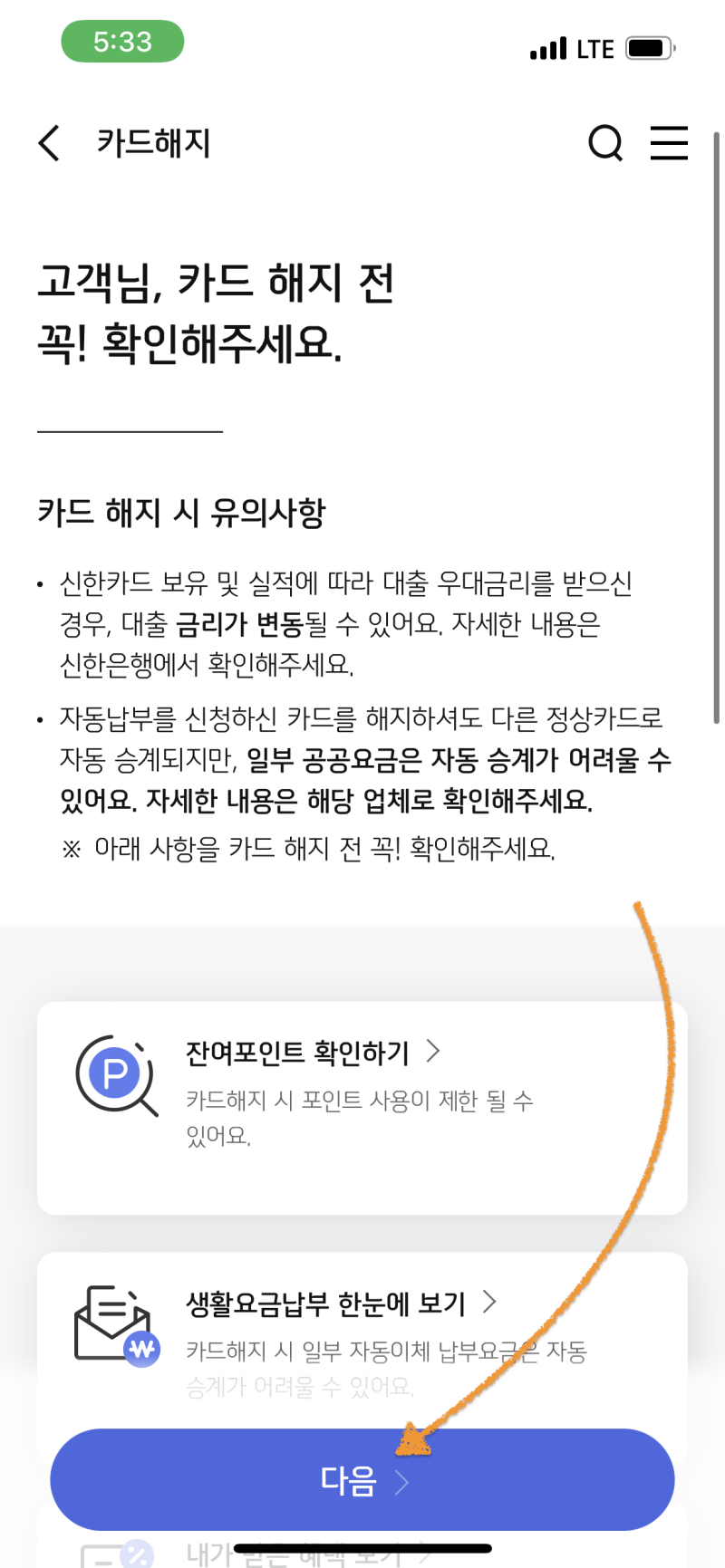 신한카드 해지 시, 해당 카드로 연결된 휴대폰 요금, 아파트 관리비 등 모든 자동이체 서비스를 반드시 다른 결제 수단으로 변경하거나 해지해야 합니다. 이 부분을 놓치면 요금 미납 등 문제가 발생할 수 있습니다.