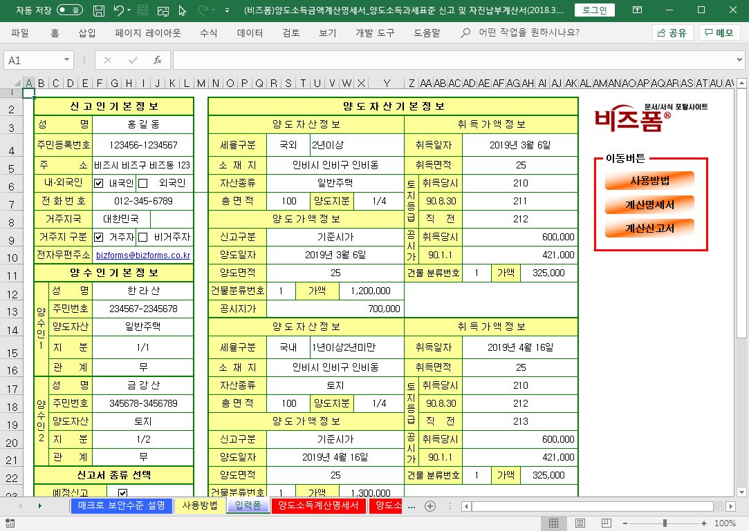 양도소득세 자동 계산기 필수 입력 항목 📝