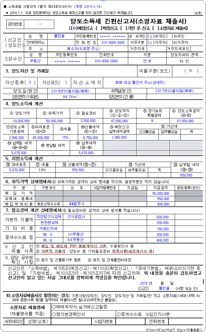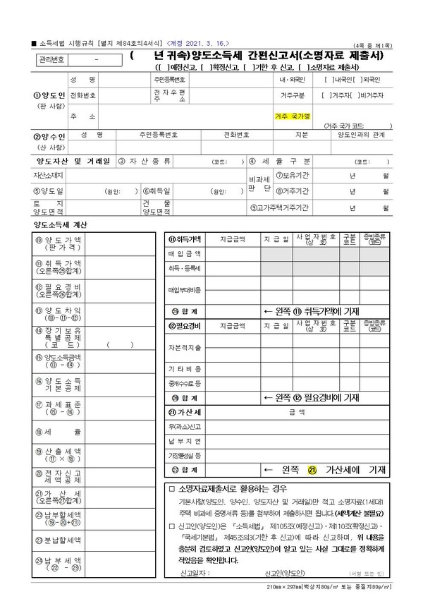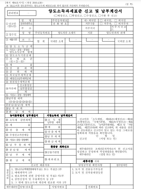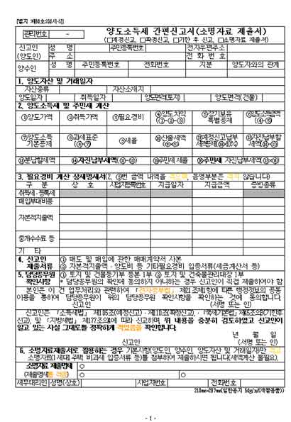 - 양도소득세 과세표준신고 및 납부계산서 제출 | 민원안내 및 신청