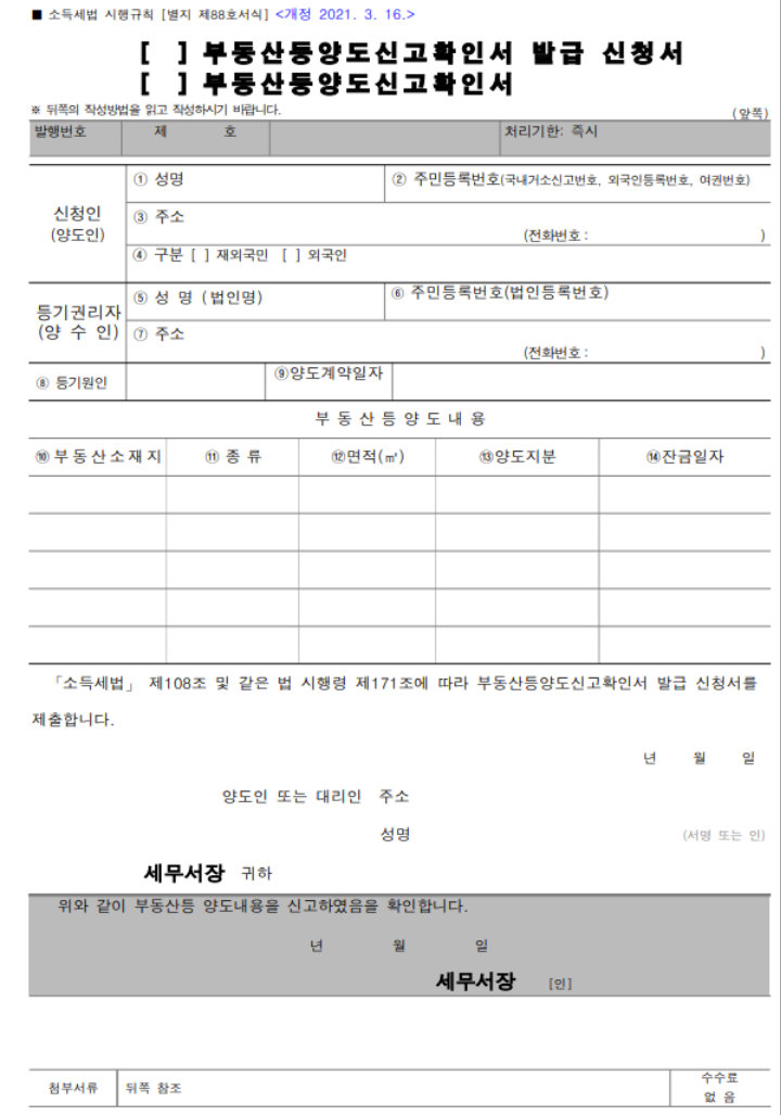 - 부동산 거래 신고필증: 부동산 거래를 했다는 것을 공식적으로 증명하는 서류입니다.