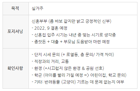 - 주위 환경: 학교, 병원, 마트, 공원 등이 가까운지 확인해요.