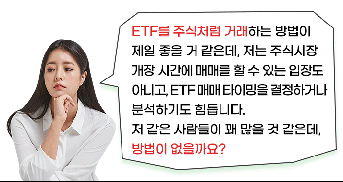 ETF는 주식처럼 실시간으로 사고팔 수 있어요. 시장의 흐름에 맞춰 유연하게 대처할 수 있다는 뜻이죠!